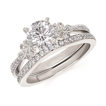Engagement Ring Forever ElegantĀ® 1/10 Ctw. Diamond Semi Mount shown with 1 Ct. Round Center Diamond in 14K Gold