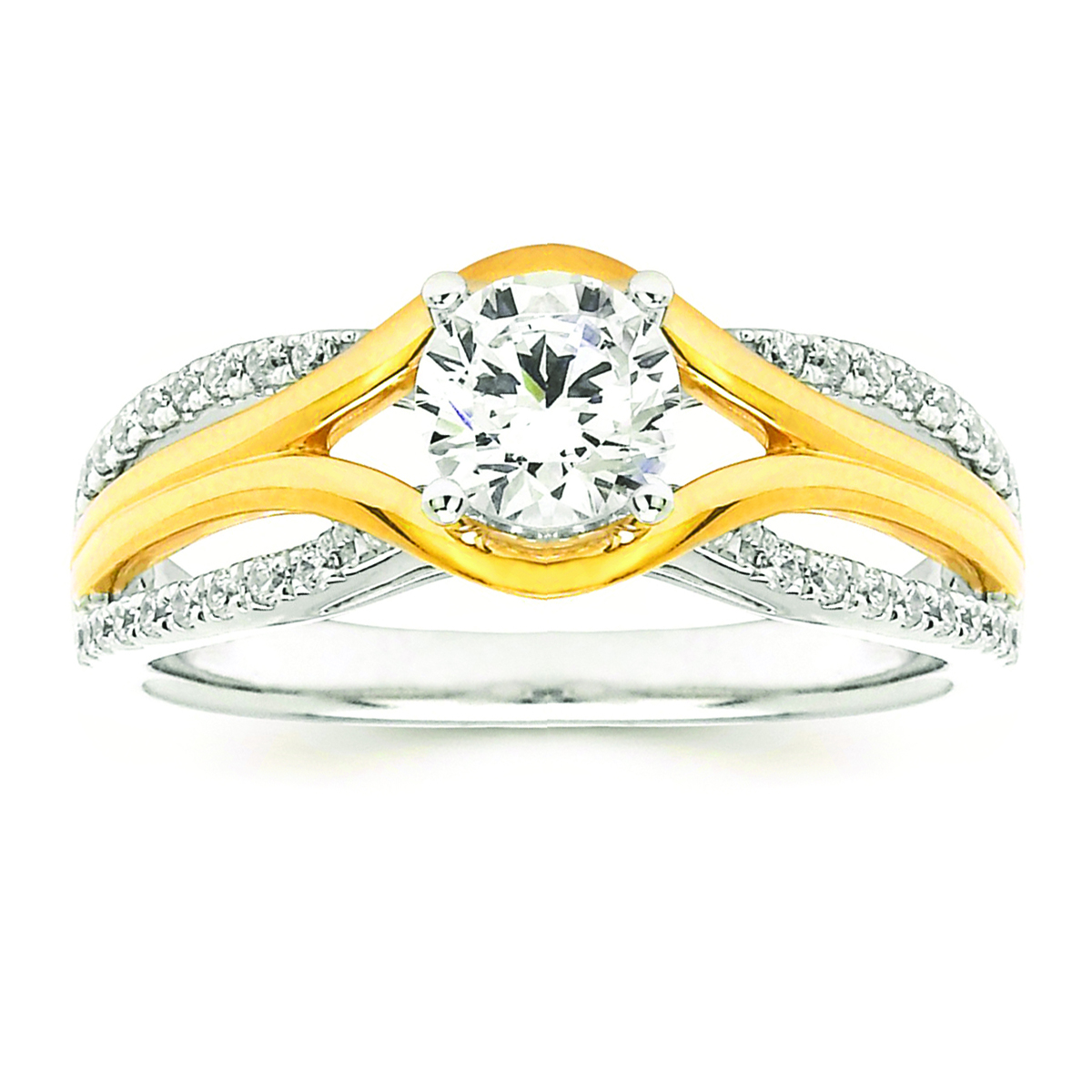 Engagement Ring Modern Bridal: 1/5 Ctw. Diamond Split Shank Semi Mount shown with 1 Ct. Round Center Diamond in 14K White & Rose Gold